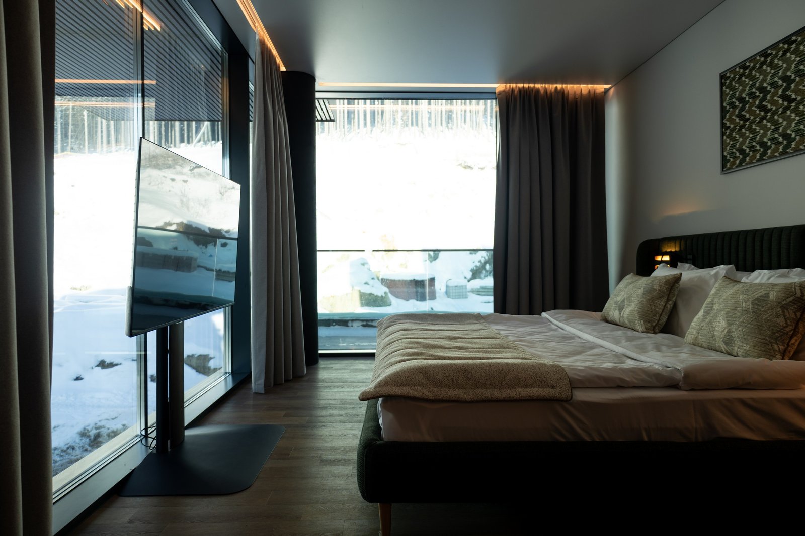 Варіант для сім’ї або ж друзів, бо крім великого двоспального ліжка є розкладний диван для двох осіб.